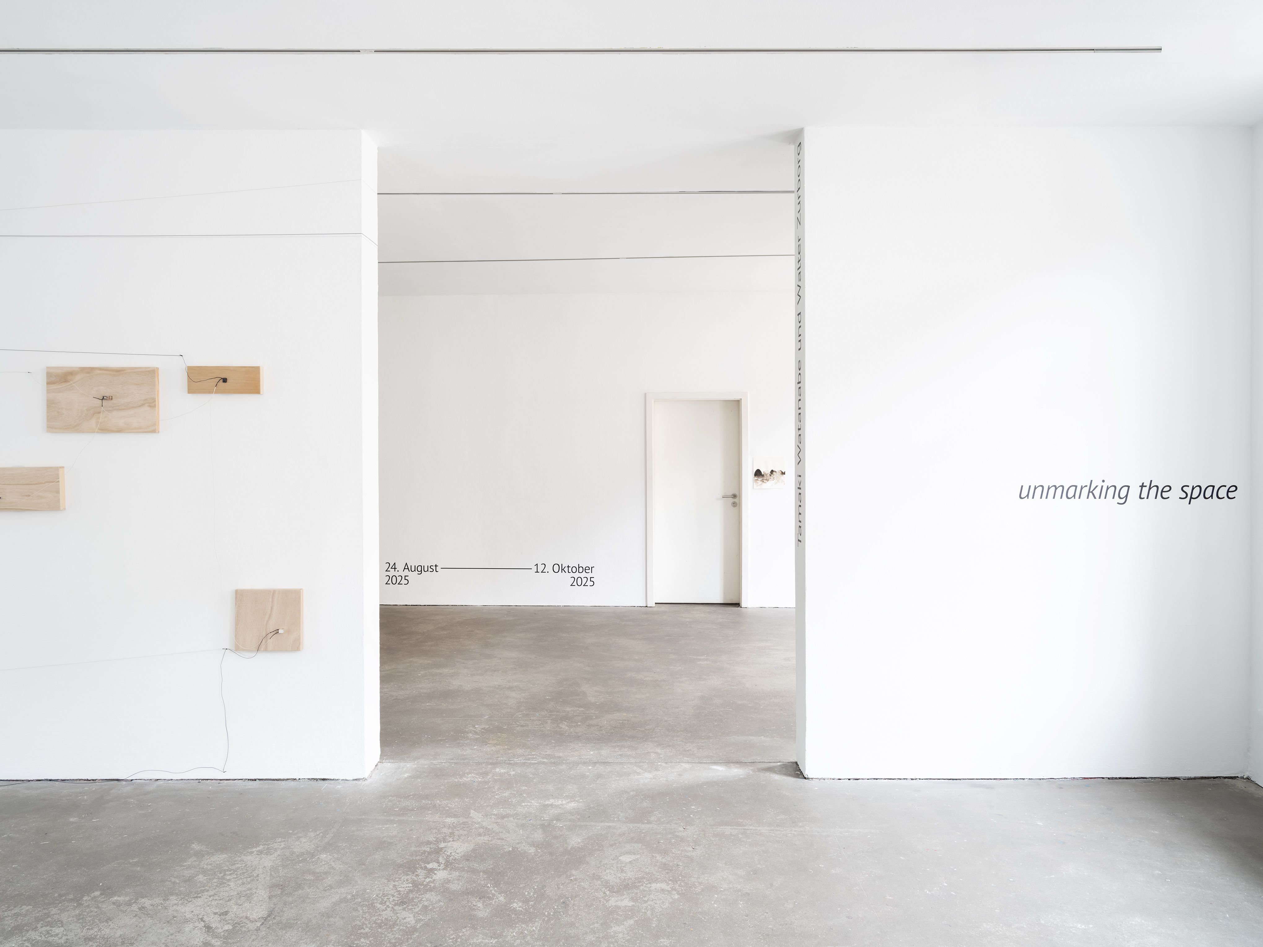 Die Ausstellung „unmarking the space“ zeigt Werke, die im Rahmen des Künstlerstipendiums entstanden sind. Zentrales Werk der Ausstellung ist die Klanginstallation „unmarking the space“, die bis zum 12. Oktober 2025 im Kunstverein Grafschaft Bentheim zu sehen ist. Mit aufgenommenen Geräuschen aus dem Außenraum, verfremdet durch ein 8-saitiges Instrument und Holzdielenbretter, schaffen die Künstler eine faszinierende Klanglandschaft, die sich je nach Position der Besucherinnen und Besucher im Raum verändert und zu einer ebenso sensiblen wie rätselhaften Erfahrung von Raum und Erinnerung wird.