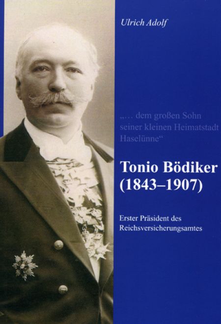 Am 04. Februar 2007 jährte sich zum hundertsten Male der Todestag Dr. Tonio Bödikers, des ersten Präsidenten des Reichsversicherungsamtes in Berlin und Wegbereiters der gesetzlichen Unfallversicherung. Die Emsländische Landschaft e.V. für die Landkreise Emsland und Grafschaft Bentheim nahm dies zum Anlass, erstmalig eine umfangreichere Biographie über diese Persönlichkeit der Öffentlichkeit zugänglich zu machen. Autor des Buches ist Ulrich Adolf, der viele Jahre in seiner Freizeit über Tonio Bödiker arbeitete und bereits mehrfach entsprechende Kurzbiographien veröffentlicht hat. Der fadengeheftete Band umfasst 160 Seiten mit zahlreichen Abbildungen.